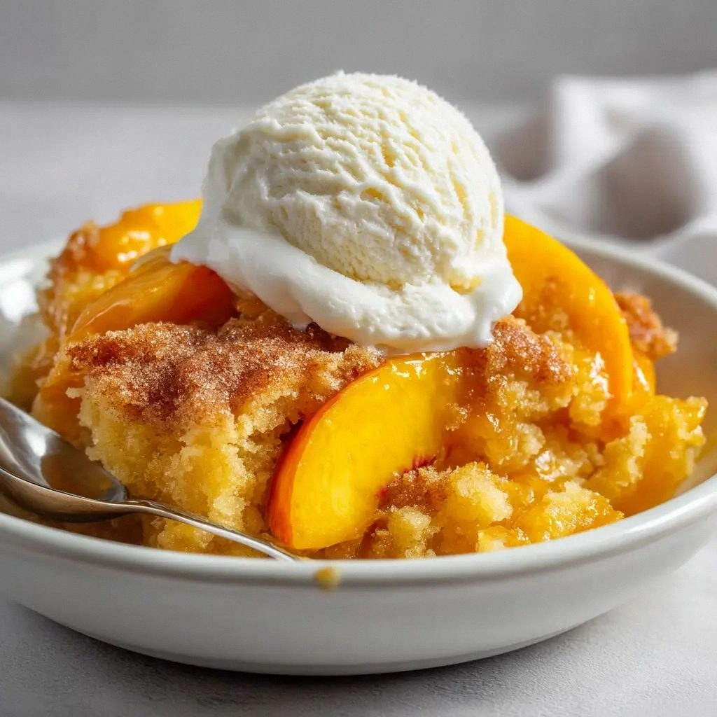 - Optional Garnish: Sprinkle fresh peach slices or a dusting of powdered sugar for an extra touch of elegance. If you’re feeling fancy, drizzle a light caramel sauce over the top.